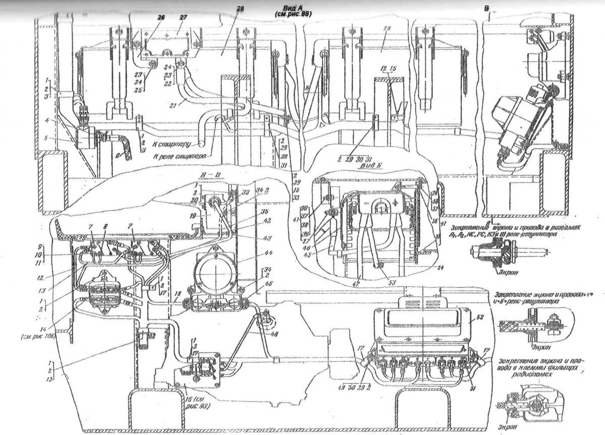Электрооборудование (установка аккумуляторных батарей, фильтров радиопомех Ф-1 и Ф-5, контакторов, реле-регулятора и блока защиты) 91