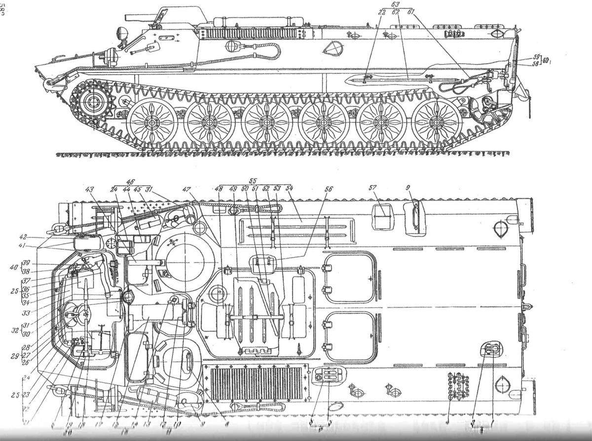 Инструмент и принадлежности (укладка инструмента и принадлежностей на транспортере-тягаче МТ-ЛБ) 191