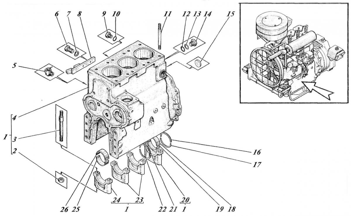 | 1 | 4901 0151 | Картер двигателя с крышками подшипников | дог. | |