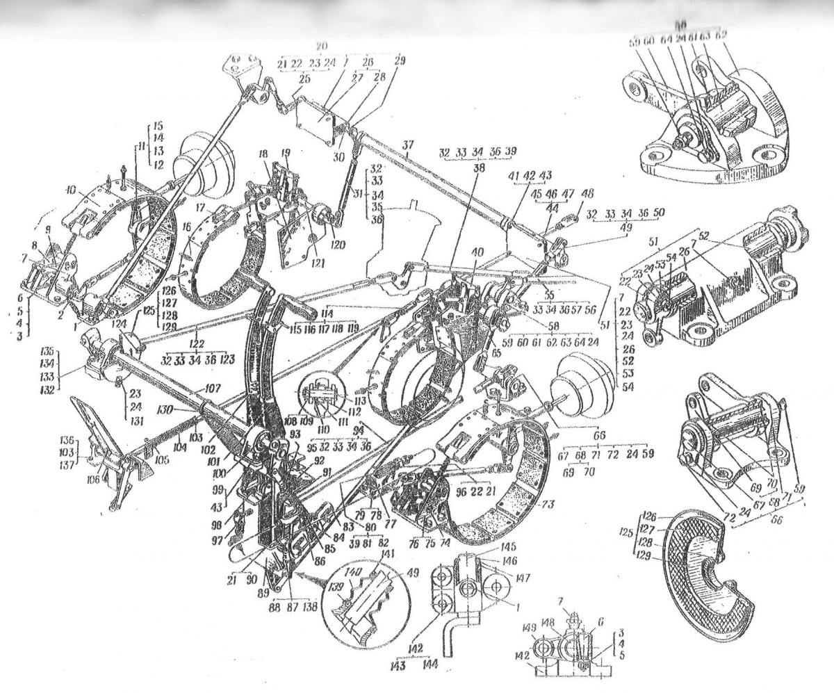 Управление механизмами поворота, сцеплением и тормозами 47