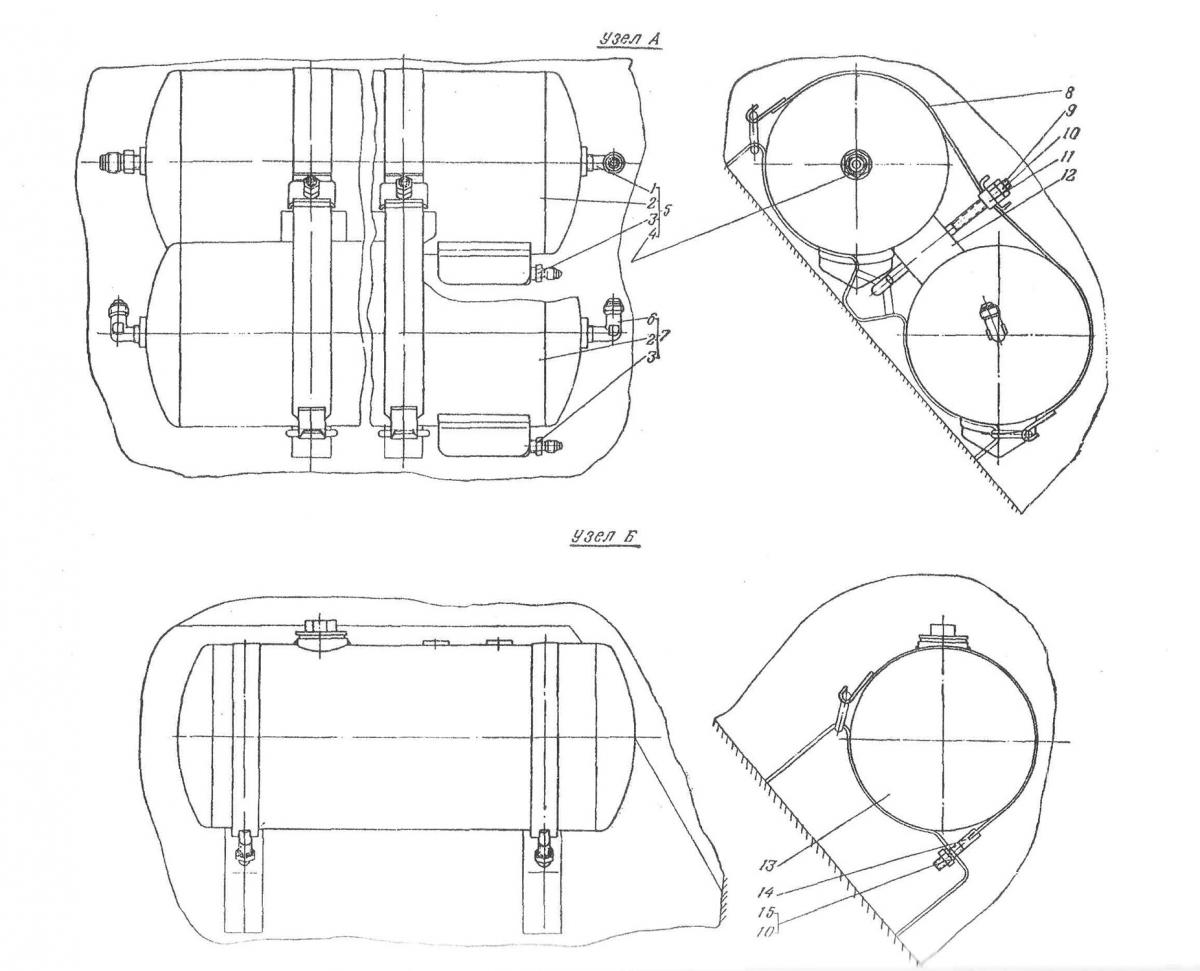 Установка баллонов воздушных и бачка стеклоомывателя 159